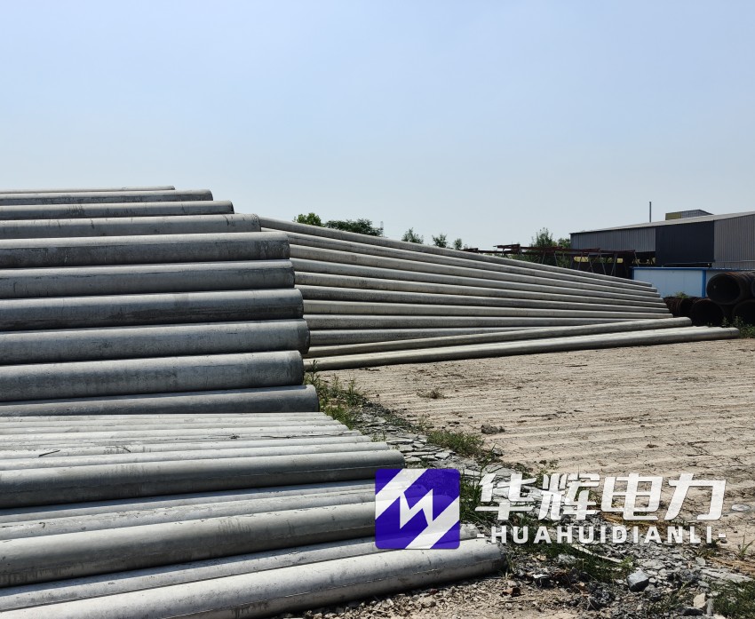 8米阳山水泥电线杆通常采用钢筋混凝土离心成型工艺,杆体呈锥形结构,梢径150mm-190mm,根径230mm-270mm,壁厚40mm-50mm。根据标准GB/T4623-2014,产品混凝土强度等级不低于C40,主筋采用HRB400级钢筋,配筋量根据抗裂弯矩要求设计,标准抗裂弯矩可达12-18kN·m,破坏弯矩不小于24kN·m。杆体重量约0.5-0.8吨,运输安装便捷,适合人工或小型机械施工。